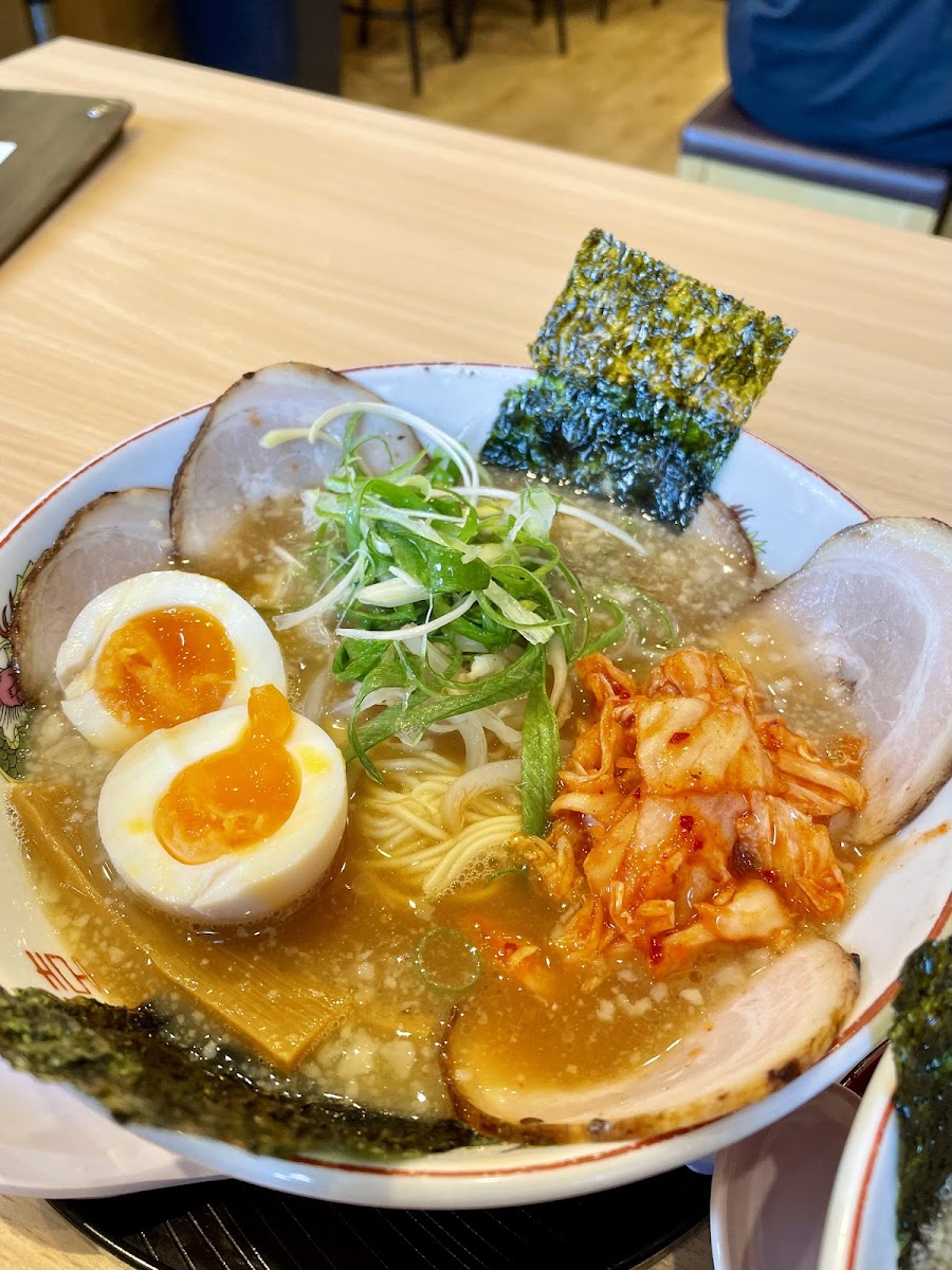 Walking in, the atmosphere is relaxed and welcoming, perfect for a laid-back lunch after sightseeing. The menu is focused yet exciting, showcasing a lineup of signature bowls that highlight the kitchen’s personality. One standout is the 九条ねぎラーメン, packed generously with Kyoto’s famous Kujo green onions. The freshness of the scallions cuts through the rich broth, creating a balance that feels both hearty and clean.